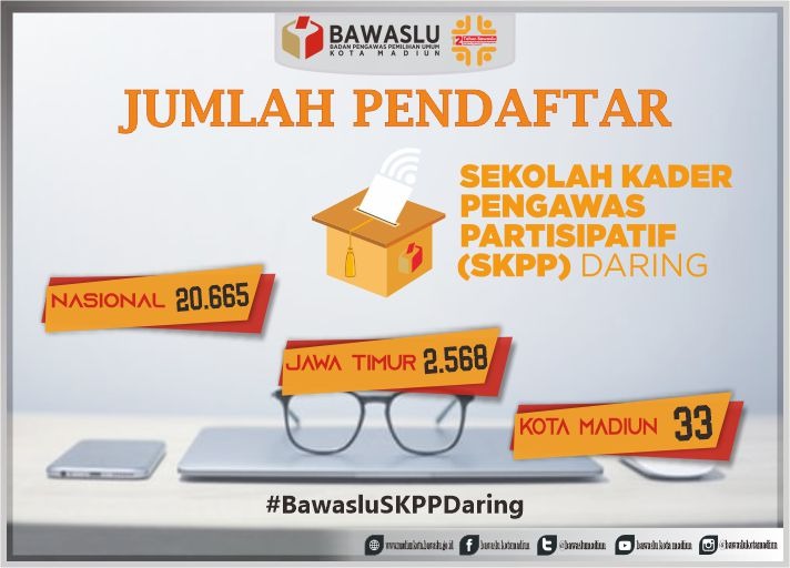Madiunkota.bawaslu.go.id, Kota Madiun- Kegiatan Sekolah Kader Pengawasan Partisipatif (SKPP) tatap muka yang sedianya akan diselenggarakan oleh Bawaslu kabupaten/kota serentak nasional pada tahun 2020 ini terpaksa ditunda akibat terjadinya wabah pandemi Covid-19. Namun, hal tersebut diganti dengan kegiatan SKPP Daring (Online) yang pendaftaranya telah dilaksanakan pada tanggal 5-8 April 2020 lalu.
