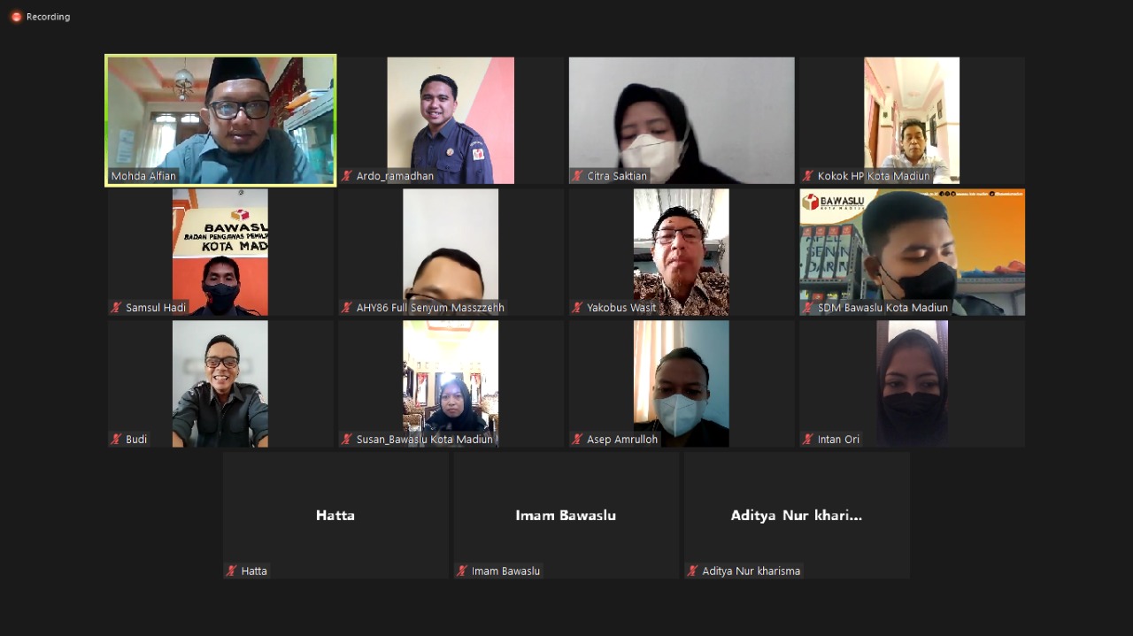 Apel rutin dilakukan oleh Bawaslu Kota Madiun setiap hari Senin pagi. Apel dilakukan pada hari Senin (21/3) secara daring mengingat Kota Madiun yang masih berstatus PPKM level 4. Dihadiri oleh Pimpinan dan Jajaran Sekretariat Bawaslu Kota Madiun, para pimpinan memberikan arahannya melalui apel secara daring tersebut.