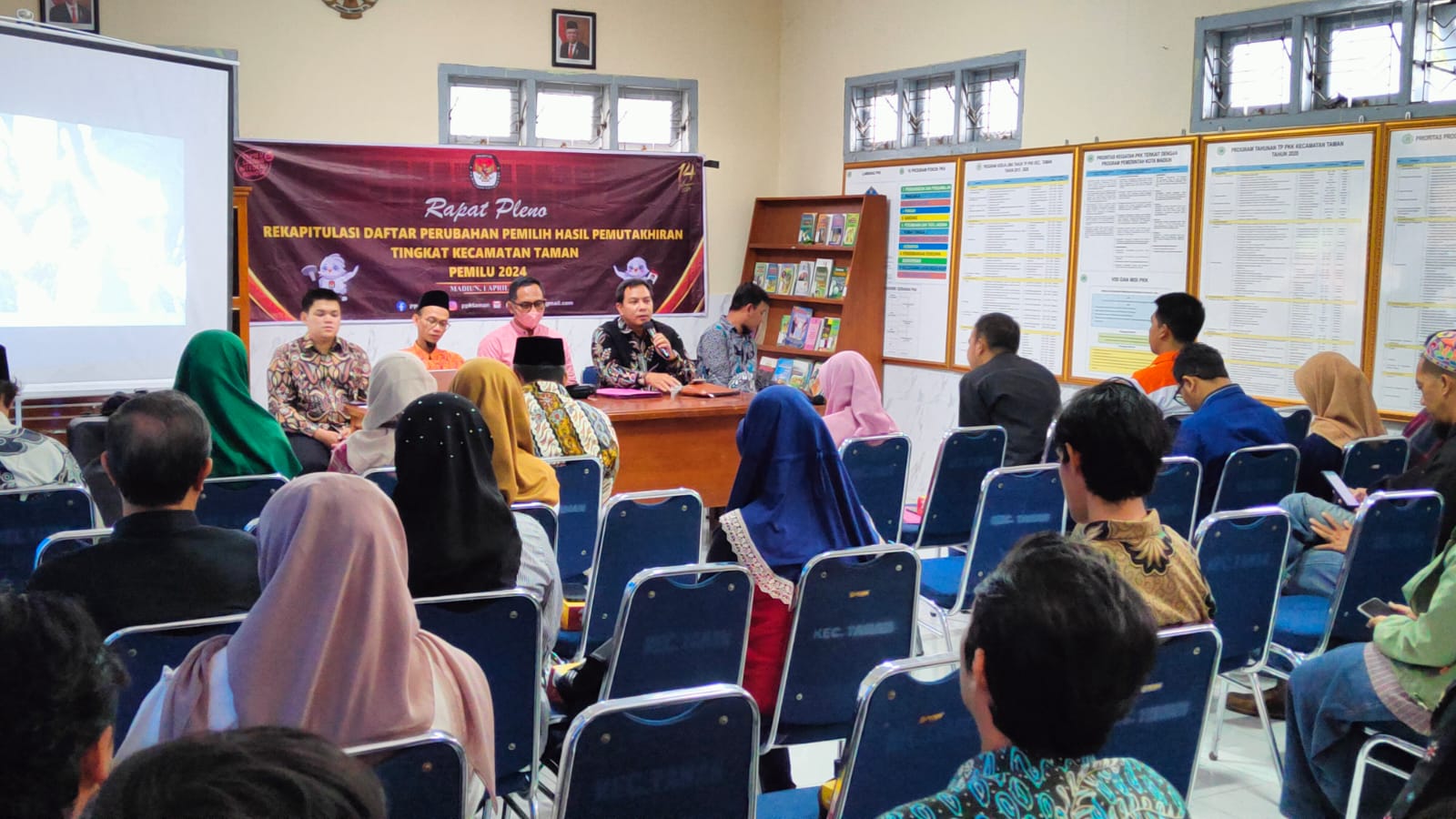 Bertempat di Ruang Pertemuan Kecamatan Taman, Bawaslu Kota Madiun melakukan monitoring di Kecamatan Taman jelang dimulainya rapat pleno rekapitulasi daftar pemilih hasil pemutakhiran pemilu 2024. Rapat pleno yang diselenggarakan oleh Panitia Pemilihan Kecamatan (PPK) Taman berlangsung pada tanggal 1 April 2023.