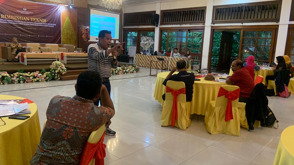 Bawaslu Kota Madiun menghadiri Bimbingan Teknis Internal Verifikasi Faktual Partai Politik Calon Peserta Pemilihan Umum Tahun 2024 bagi komisioner dan sekretariat Komisi Pemilihan Umum Kota Madiun yang bertempatkan di Jawa Dwipa Resort Jl. Raya Solo - Tawangmangu. Acara yang diselenggarakan oleh KPU Kota Madiun pada tanggal 14 Oktober sampai dengan 15 Oktober 2022 dihadiri oleh seluruh Komisioner KPU Kota Madiun serta Sekretariat KPU Kota Madiun. Kokok HP, selaku Ketua Bawaslu Kota Madiun menjadi narasumber pada acara tersebut.