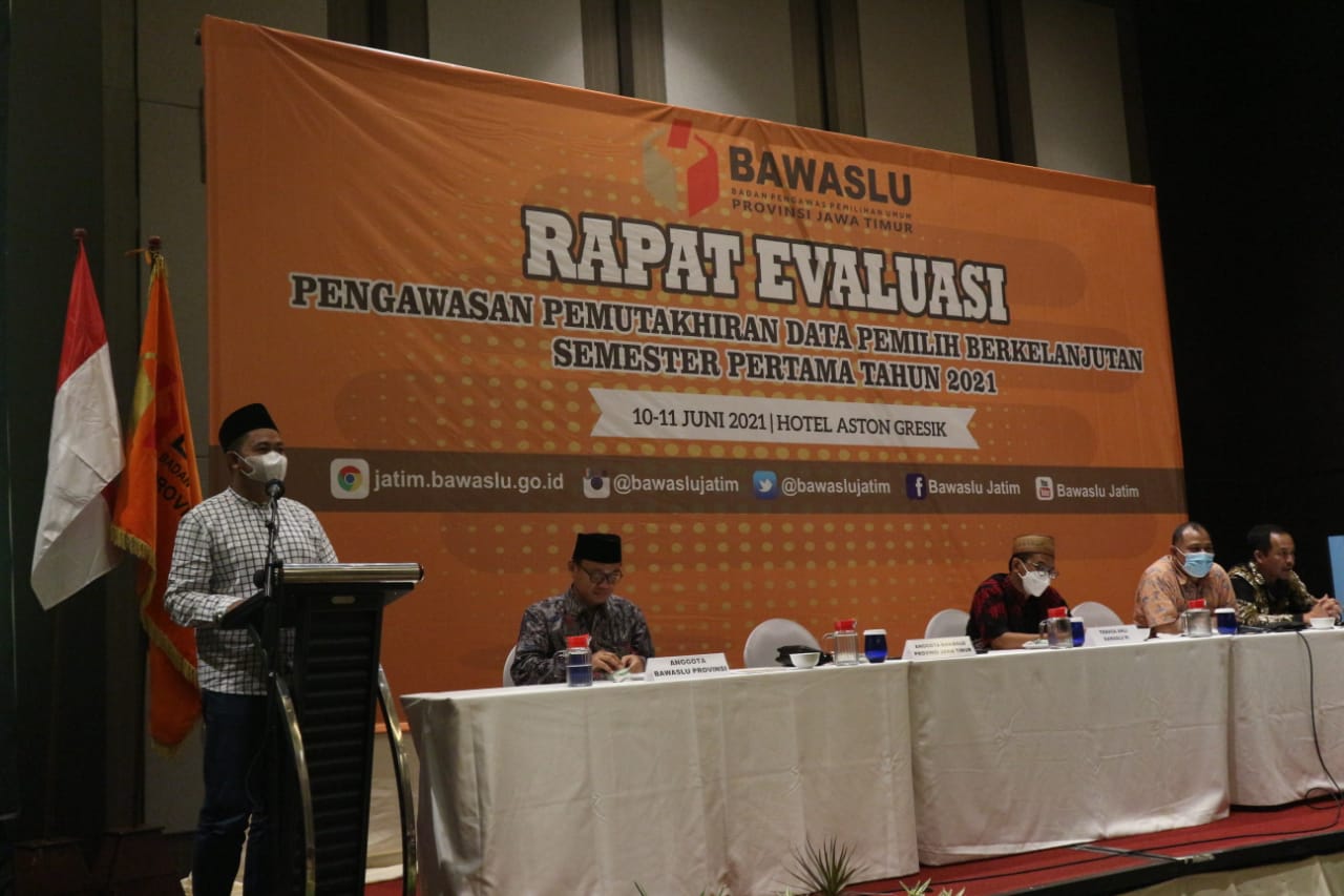Madiunkota.bawaslu.go.id, Gresik- Sebagai wujud keseriusan dalam melaksanakan Pemutakhiran Daftar Pemilih Berkelanjutan (PDPB) Bawaslu Kota Madiun hadir dalam Rapat Evaluasi Pengawasan Pemutakhiran Data Pemilih Berkelanjutan Semester Pertama Tahun 2021 yang diselenggarakan oleh Bawaslu Provinsi Jawa Timur, pada Kamis-Jum’at (10-11/06/2021) bertempat di Aston Inn Gresik.