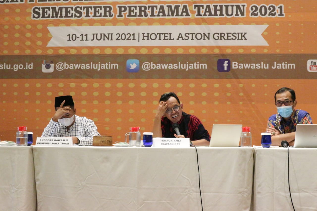 Sebagai narasumber dalam kegiatan tersebut yaitu Tenaga Ahli Bawaslu RI, Masykurudin Hafidz, Koordiv Pengawasan dan Hubal Bawaslu Jatim, Aang Kunaifi serta para akademisi dan penggiat Pemilu di Provinsi Jatim.