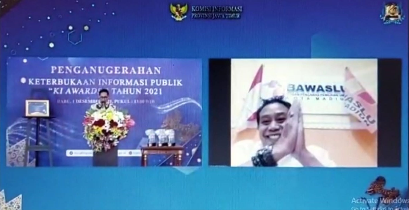 madiunkota.bawaslu.go.id, Kota Madiun - Segala inovasi, improvisasi dan kerja keras segenap pimpinan dan tim sekretariat Bawaslu kota akhirnya membuahkan hasil. Bawaslu Kota Madiun terbukti bisa meraih penganugerahan sebagai Penyedia Informasi Berkala TERBAIK Bawaslu Kabupaten/Kota se-Jawa Timur dari Komisi Informasi (KI) Jawa Timur, pada acara Penganugerahan Keterbukaan Informasi Publik "KI AWARD" Tahun 2021 via daring zoom, Rabu (01/12/2021)