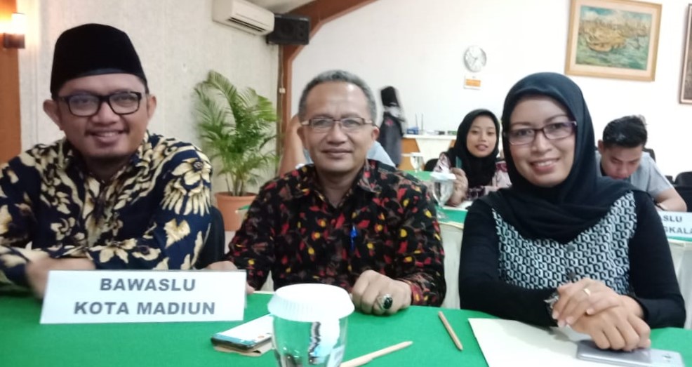 Koordinator Sekretariat, Koodinator Divisi Organisasi dan Sumber Daya Manusia, beserta staf Bawaslu Kota Madiun yang hadir dalam acara yang berlangsung tanggal 15 hingga 17 Maret itu.