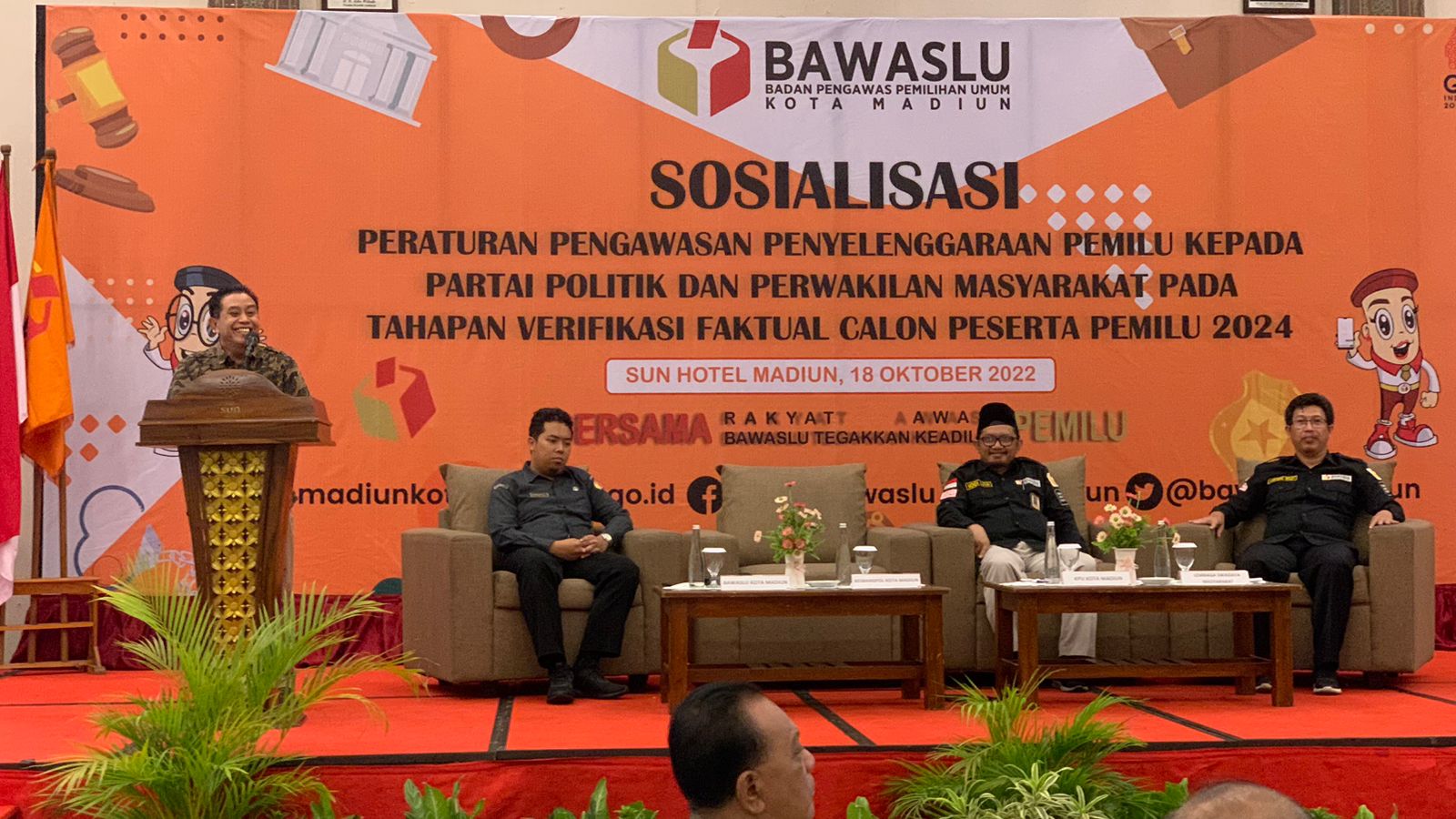 BAWASLU KOTA MADIUN SOSIALISASIKAN PERATURAN PENGAWASAN PEMILU PADA TAHAPAN VERFAK KEPADA PARPOL DAN PERWAKILAN MASYARAKAT