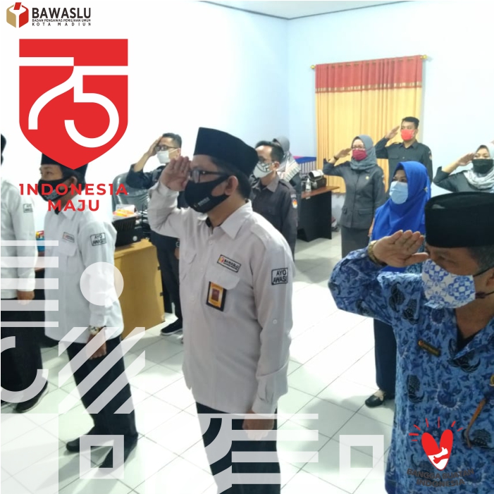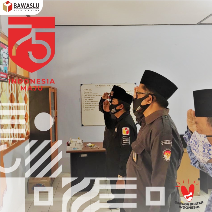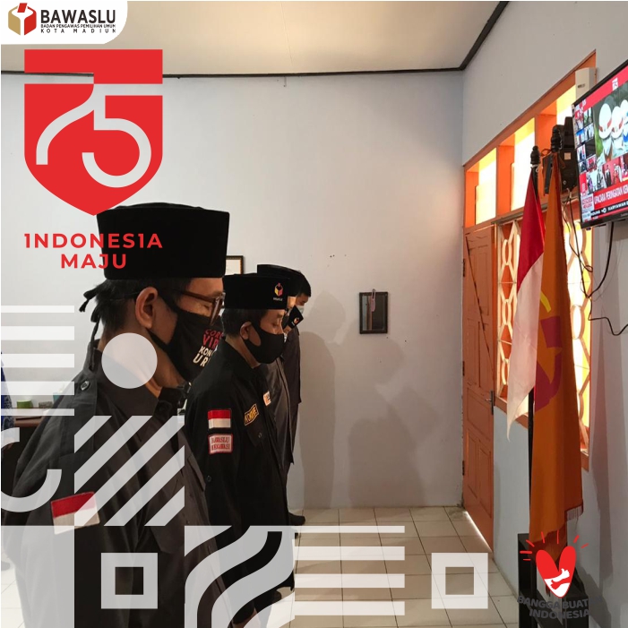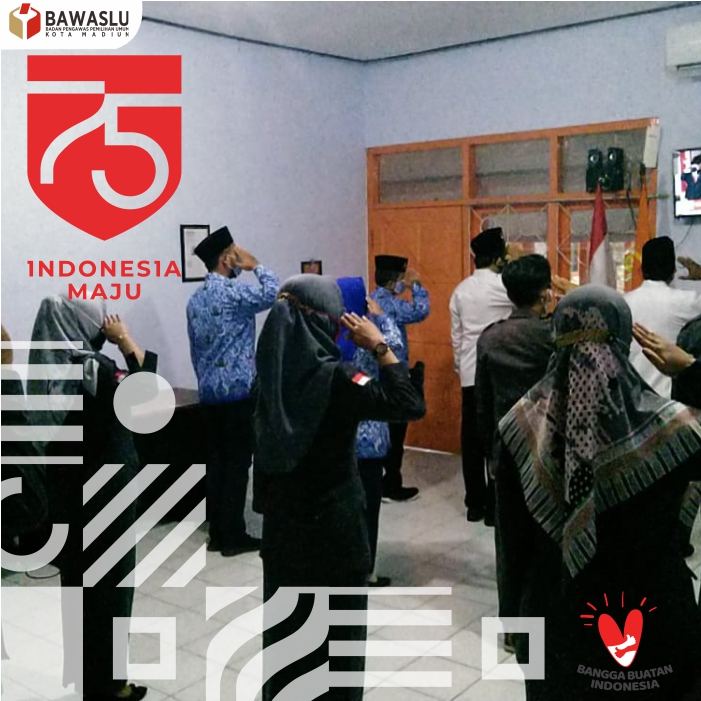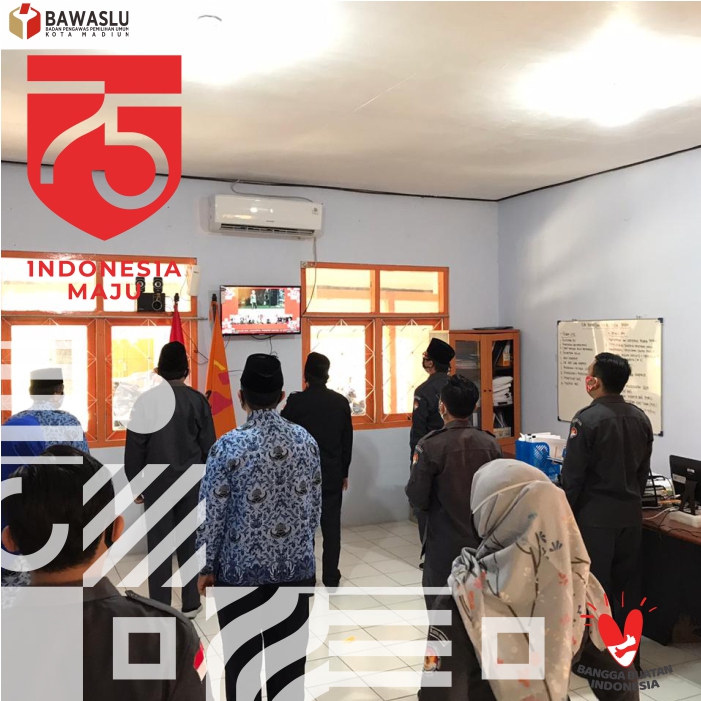 Ketua dan Anggota, Koordinator Sekretariat beserta seluruh staff Bawaslu Kota Madiun mengikuti secara bersama-sama melalui layar televisi detik-detik proklamasi sekitar pukul 10.17 WIB.