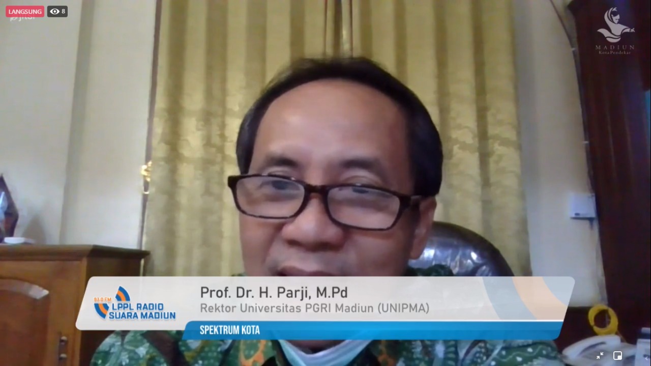 Menghadirkan narasumber seorang guru besar Ilmu Pendidikan dan Ilmu Sosial sekaligus Rektor Universitas PGRI Madiun, Prof. Dr. H. Parji, M.Pd. yang berduet bersama Koordiv Organisasi dan Sumber Daya Manusia Bawaslu Kota Madiun, Mohda Alfian.