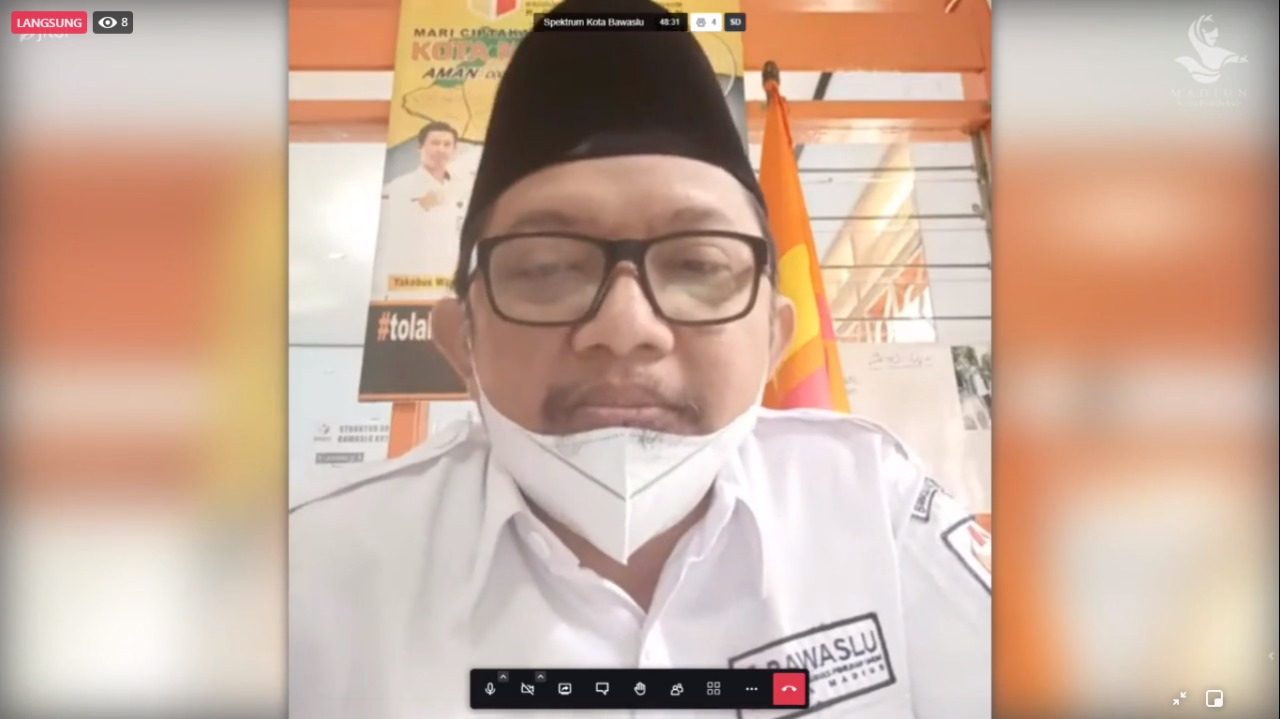 Koordiv OSDM Bawaslu Kota Madiun, Mohda Alfian saat menyampaikan statment dalam kegiatan Virtual Talkshow Bawaslu Menyapa