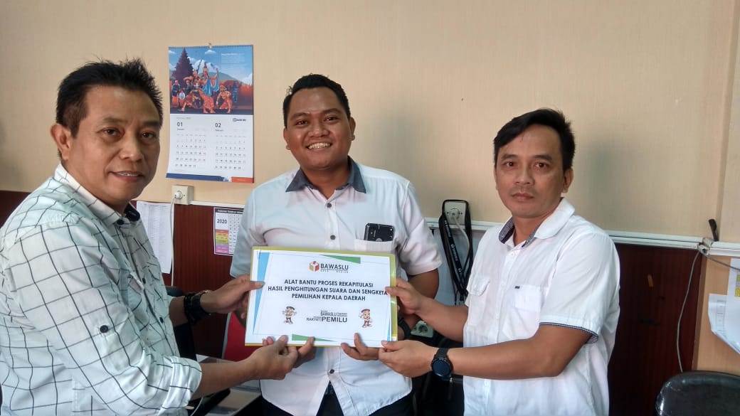 Datangi Bawaslu Provinsi Jatim, Bawaslu Kota Madiun Serahkan Alat Bantu Evaluasi