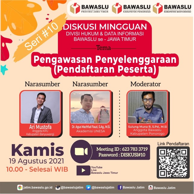 Diskusi Mingguan Hukum dan Data Informasi Bawaslu se-Jawa Timur seri ke #10 : Pengawasan Penyelenggaraan (Pendaftaran Peserta)
