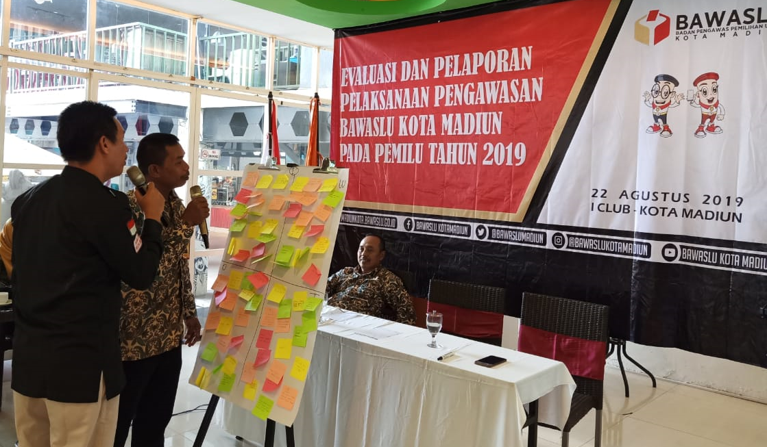 Madiun (22/08), Kegiatan Evaluasi dan Pelaporan Pelaksanaan Pengawasan diadakan oleh Bawaslu Kota Madiun di I Club – Kota Madiun. Narasumber yang pertama, Kokok Heru Purwoko menyampaikan mengenai diadakanyya Pemilu serentak dengan tujuan menghemat anggaran 5 – 10 Triliyun Rupiah. Namun demikian, Waktu pelaksanaan Pemilu lebih lama dan melelahkan. Sehingga muncul dengan pahlawan demokrasi karena ada yang sakit bahkan sampai meninggal dunia.