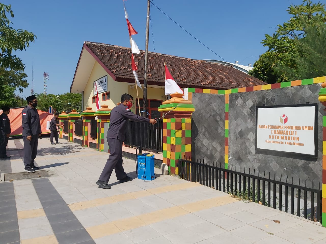 Genderang Perang Lawan Covid-19, Bawaslu Kota Madiun Lakukan Penyemprotan Mandiri