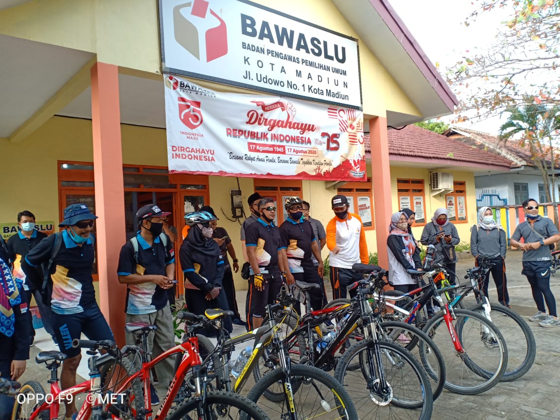 Madiunkota.bawaslu.go.id, Kota Madiun - Dalam rangka peringatan HUT RI ke 75 Penyelengara Pemilu kota Madiun pada Jum’at, 14 Agustus 2020 menyelenggarakan Gowes Bersama yang diikuti oleh pimpinan dan Staf Bawaslu Kota Madiun serta Pimpinan dan Staf KPU kota Madiun.