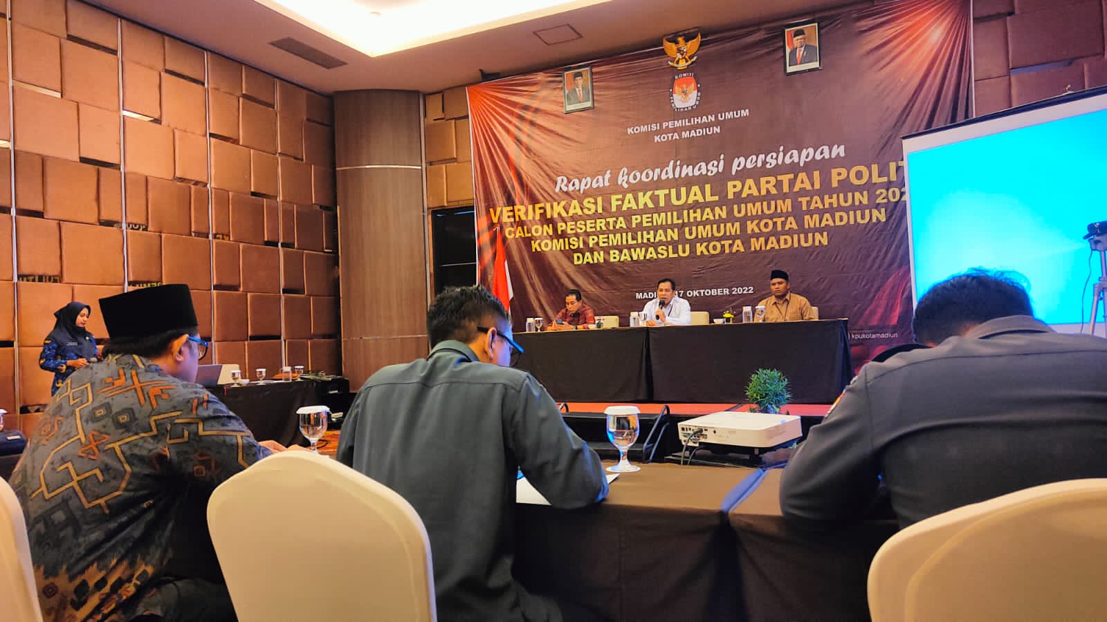 Rakor tersebut dilaksanakan agar pelaksanaan verifikasi faktual partai politik calon peserta Pemilu 2024 di Kota Madiun berjalan lancar.