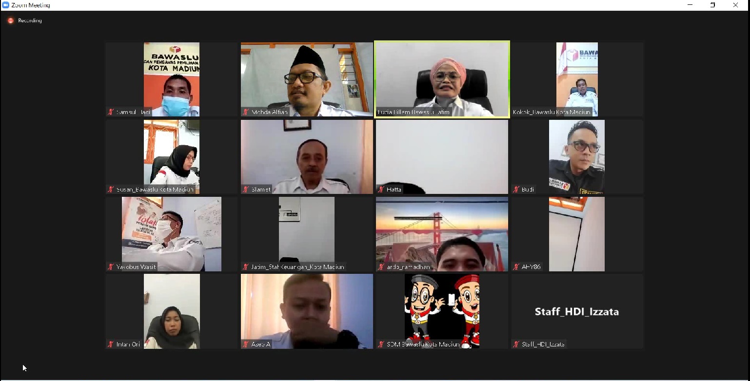 "Rapat yang dilakukan daring ini diharapkan bermanfaat khususnya bagi Bawaslu Kota Madiun yang mendapat arahan dari bu Kabag Bawaslu yang tidak hanya tentang tata kelola informasi tetapi juga update informasi dari Bawaslu RI maupun Bawaslu Jatim" ujar Kokok Ketua Bawaslu Kota Madiun