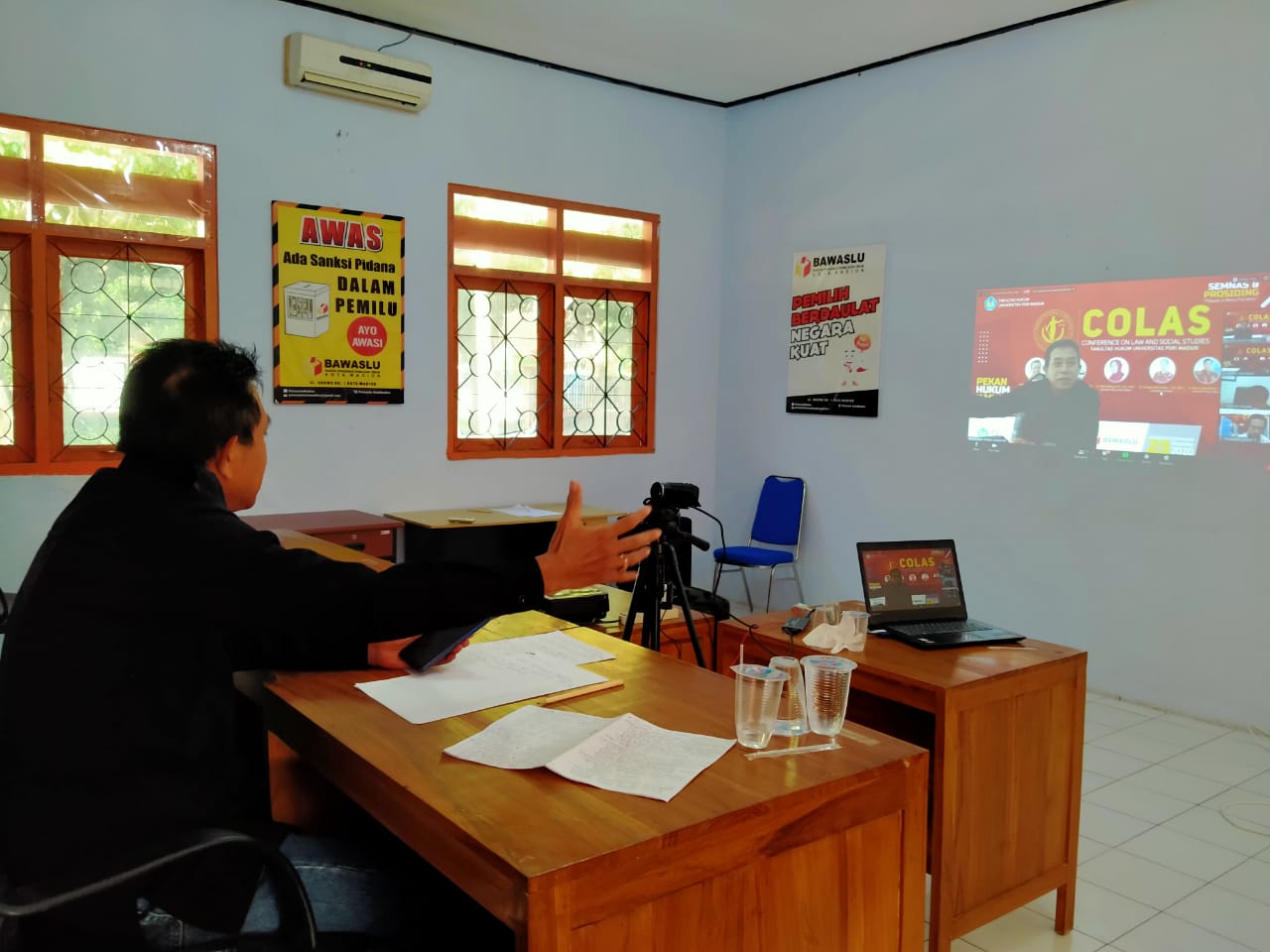 Madiunkota.bawaslu.go.id, Kota Madiun- Komitmen terhadap penguatan partisipasi masyarakat terhadap demokrasi dan pengawasan kepemiluan, terus diupayakan oleh Bawaslu Kota Madiun. Salah satu wujud konkretnya dengan mendukung penuh kegiatan kajian dan diskusi tentang kepemiluan, dengan bertindak sebagai narasumber dalam kegiatan Seminar Nasional dan Prosiding “Pilkada di Masa Pandemi” Conference on Law and Social Studies yang diselenggarakan oleh Himpunan Mahasiswa Fakultas Hukum Universitas PGRI Madiun (UNIPMA), Rabu (23/12/2020) secara daring.