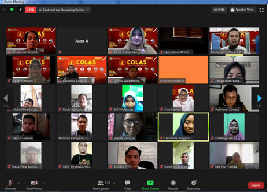 Suasana Seminar Nasional dan Prosiding “Pilkada di Masa Pandemi” Conference on Law and Social Studies yang diselenggarakan oleh Himpunan Mahasiswa Fakultas Hukum Universitas PGRI Madiun (UNIPMA)