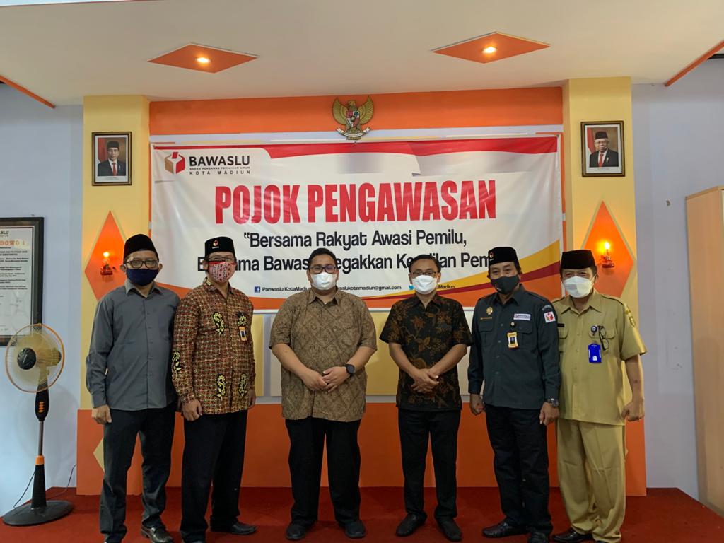 Anggota Bawaslu RI, Rahmat Bagja bersama dengan komisioner Bawaslu Provinsi Jatim, Komisioner Bawaslu Kota Madiun dan kab/kota terdekat