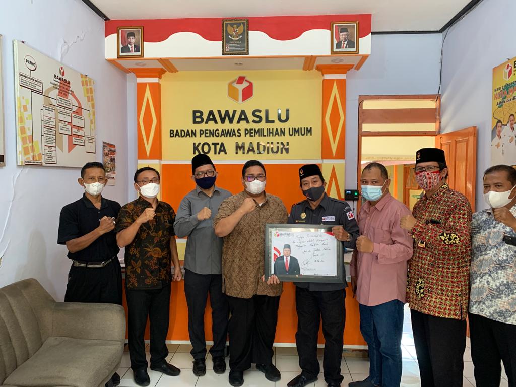 Anggota Bawaslu RI, Rahmat Bagja bersama dengan komisioner Bawaslu Provinsi Jatim, Komisioner dan Koordinator Sekretariat Bawaslu Kota Madiun