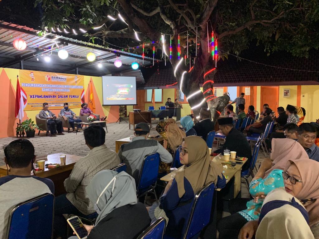 Madiunkota.bawaslu.go.id, Kota Madiun- Bawaslu Kota Madiun mempunyai cara tersendiri dalam memaknai peringatan hari pahlawan ditahun ini. Perhelatan outdoor bertajuk Pengembangan Pengawasan Partisipatif dengan tema “Kepahlawanan dalam Pemilu” menjadi pilihan Bawaslu Kota Madiun untuk memaknai hari bersejarah ini pada Selasa (10/11/2020) malam bertempat di halaman Bawaslu Kota Madiun.