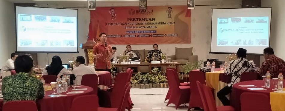 Bawaslu, Kota Madiun - Guna meningkatkan kinerja pengawasan, Bawaslu Kota Madiun terus meningkatkan sinergi dengan stakeholder, hal tersebut diwujudkan dalam kegiatan pertemuan fasilitasi dan koordinasi dengan mitra kerja Bawaslu Kota Madiun yang digelar pada hari ini, Rabu (2/10/2019) bertempat di Sun Hotel Jl. S.Parman Kota Madiun.