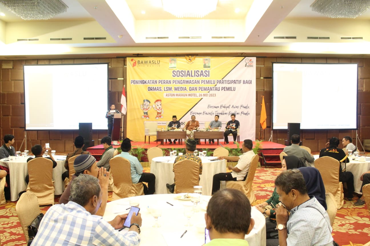 madiunkota.bawaslu.go.id, Kota Madiun - Seiring berjalannya tahapan Pemilu 2024, Bawaslu Kota Madiun mengadakan Sosialisasi Peran Pengawasan Pemilu Partisipataif bagi Ormas, LSM, Media dan Pemantau Pemilu. Bertempat di Aston Hotel Kota Madiun pada hari Jumat 26 Mei 2023, acara dimulai pada pukul 13.00 sampai dengan selesai , acara di buka secara langsung oleh ketua Bawaslu kota Madiun Bapak Kokok Heru Purwoko , SH, MH