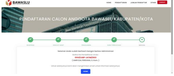 - Tangkap Layar tanda terima pendaftaran secara online di Aplikasi Mr. Bawaslu http://sdmod.bawaslu.go.id/ seperti dibawah ini;
