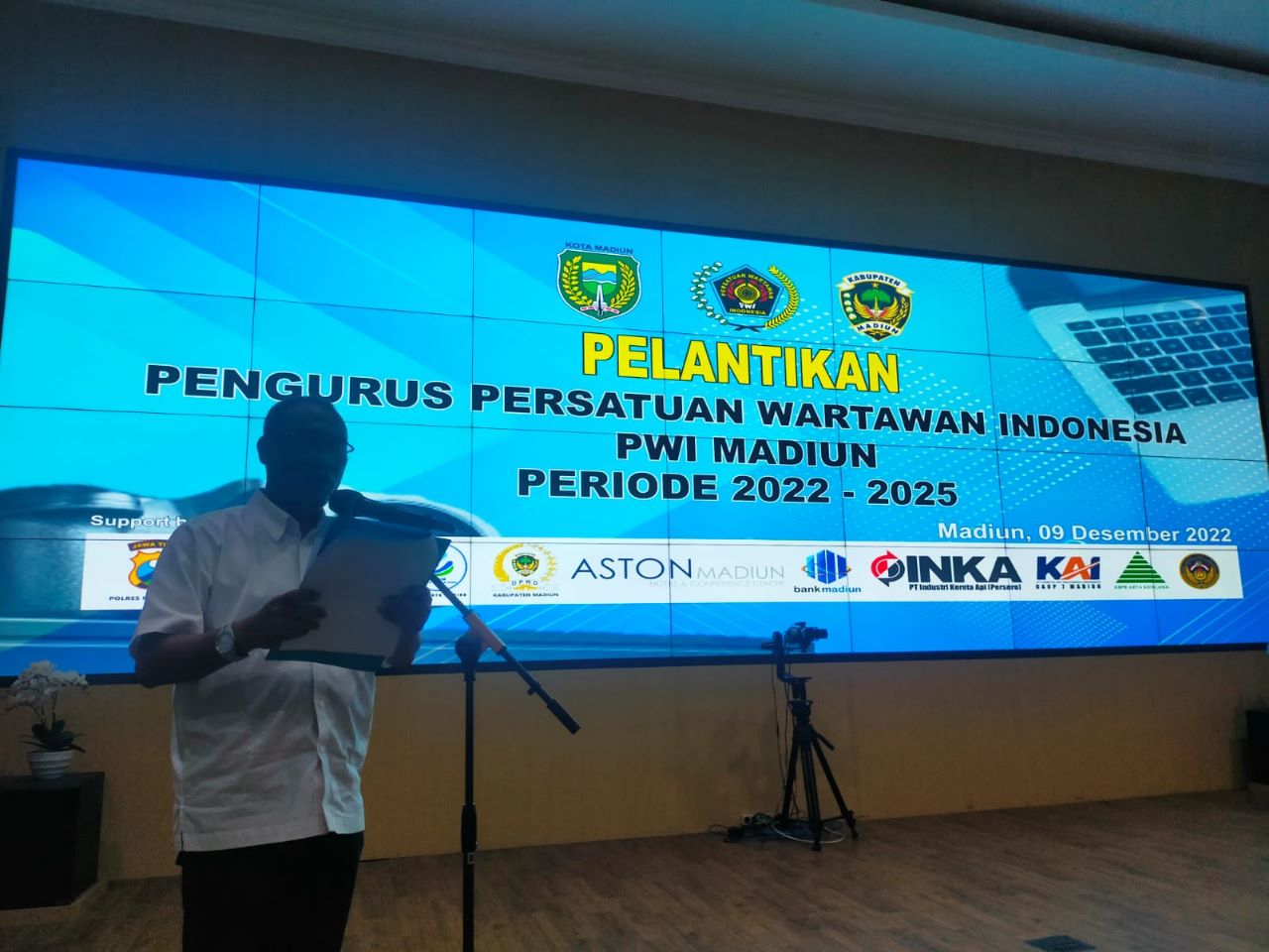 Pembacaan SK Kepengurusan PWI Madiun periode 2022 – 2025 oleh Sekretaris Umum PWI Jawa Timur, Eko Pamuji