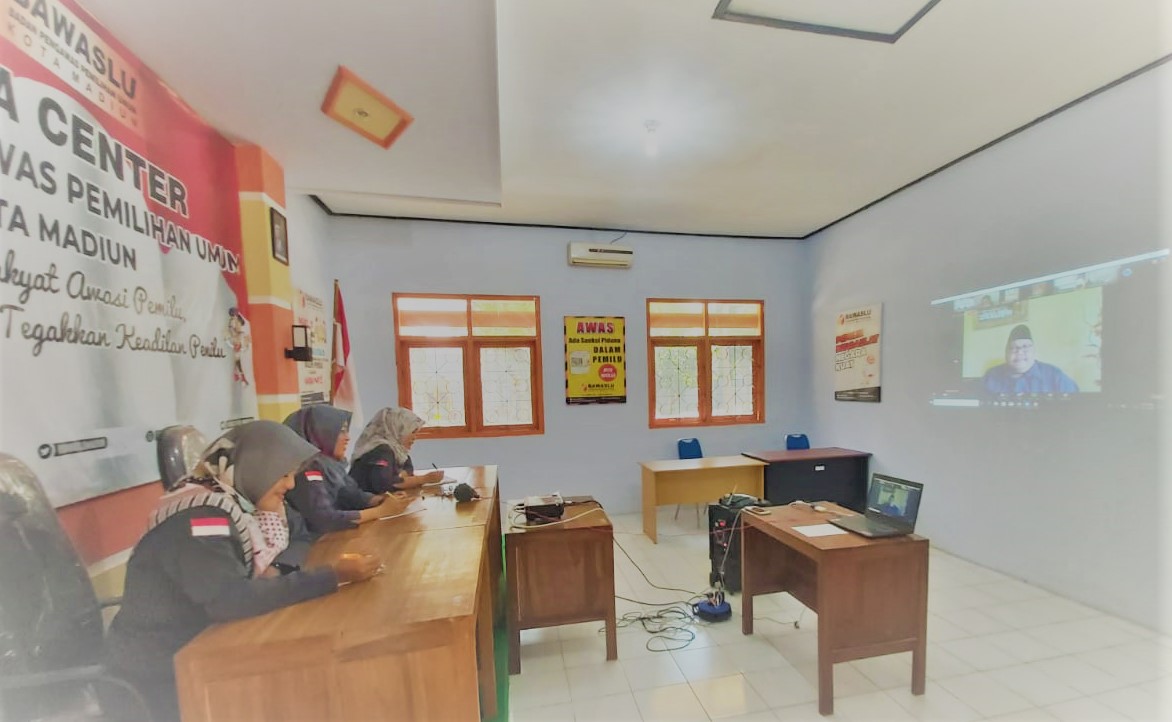 Hadir dalam webinar pagi itu adalah Ketua Bawaslu Kota Madiun Kokok Heru Purwoko, Anggota Bawaslu Kota Madiun Mohda Alfian dan Yakobus Wasit Supodo, beserta sejumlah staf perempuan juga Nampak mengikuti, dan suatu kebetulan Bawaslu Kota Madiun dijajaran komisioner tidak ada perempuannya. Mereka Nampak serius dan menyimak kegiatan dimaksud, dikarenakan narasumber yang dihadirkan sangat berkualaitas.