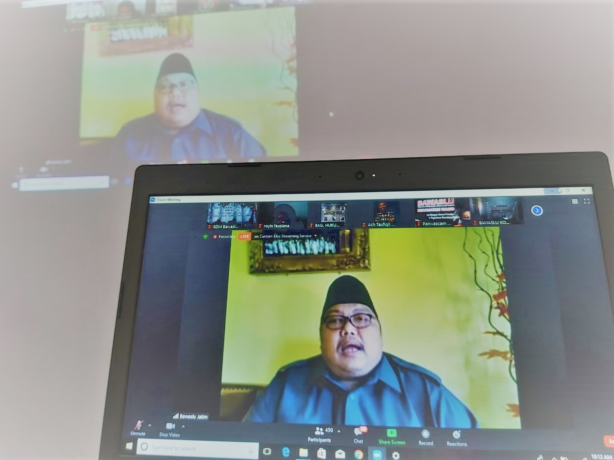 Acara tersebut dibuka langsung oleh Ketua Bawaslu Provinsi Jawa Timur Moh Amin, tepat pada pukul 10.00 WIB, dalam sambutannya beliau mengucapkan terima kasih sekaligus memberikan ucapan selamat datang dan selamat mengikuti kegiatan tersebut, sekaligus menyampaikan pentingnya menjaga kesehatan bagi jajaran pengawas, sehingga nantinya akan ada manfaat yang diperoleh lewat webinar ini.
