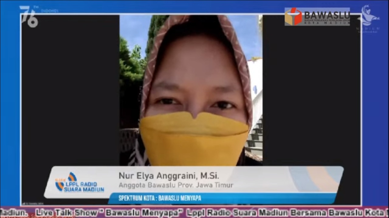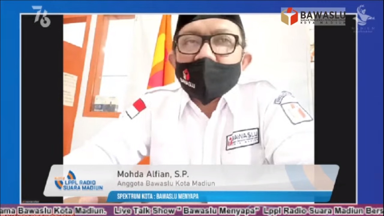 madiunkota.bawaslu.go.id, Kota Madiun - Spektrum Kota Madiun Bawaslu Menyapa edisi ke -13 mengulas tentang "Pengawasan Media Sosial" pada Rabu(13/10/2021) . Bertindak sebagai narasumber Anggota Bawaslu Jawa Timur Nur Elya Anggraini, dan Anggota Bawaslu Kota Madiun Mohda Alfian serta moderatornya adalah penyiar LPPL Suara Madiun, Kiki Desilia.