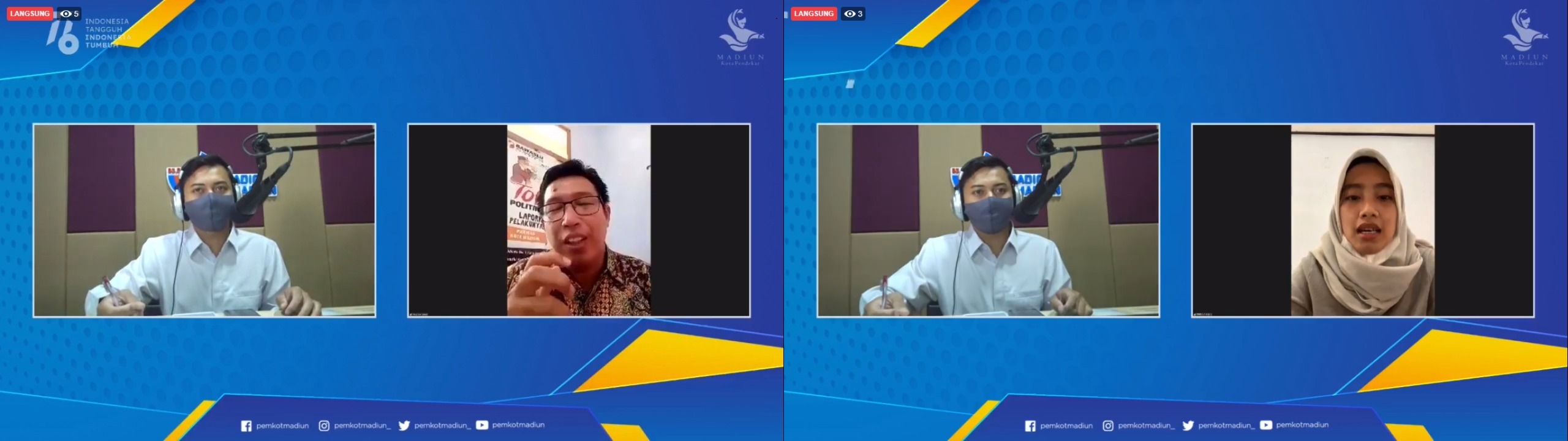 Madiunkota.bawaslu.go.id, Kota Madiun- Bawaslu Kota Madiun menggelar virtual talkshow Bawaslu Manyapa edisi 12 yang bekerjasama dengan LPPL Radio Suara Madiun FM 93.0 MHz bertema “SKPP : Pengkaderan Pengawas Partisipatif” pada Rabu, (22/09/2021) live secara daring melalui Fanspage Pemerintah Kota Madiun dan YouTube Bawaslu Kota Madiun.