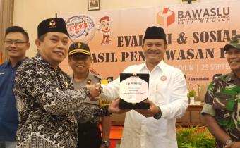 Bawaslu, Kota Madiun – Badan Pengawas Pemilihan Umum (BAWASLU) Kota Madiun menyelenggarakan Evaluasi dan Sosialisasi Hasil Pengawasan Pemilu Tahun 2019, kegiatan ini di selenggarakan di Ballroom Sun Hotel Madiun, Rabu (25/09/2019).