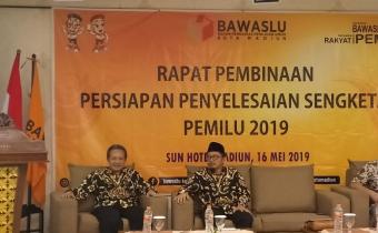 Ketua Bawaslu Kota Madiun Kokok Heru Purwoko membuka acara rapat pembinaan persiapan penyelesaian sengketa Pemilu 2019 (foto : slamet/bawaslu kota madiun)