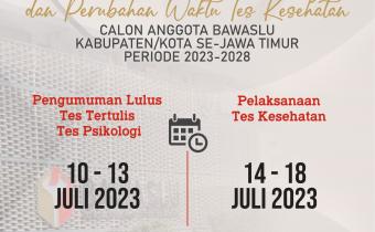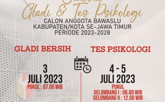 Berikut jadwal gladi dan Tes Psikologi Calon Anggota Bawaslu Kabupaten/Kota se-Jawa Timur periode 2023-2028.