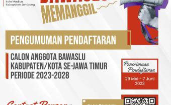Dalam rangka pembentukan Bawaslu Kabupaten/Kota Provinsi Jawa Timur Zona 6 Tahun 2023, maka Tim Seleksi Calon Anggota Bawaslu Kabupaten/Kota Provinsi Jawa Timur Zona 6 b