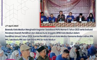 Madiunkota.bawaslu.go.id, Kota Madiun- Bawaslu Kota Madiun dengan formasi lengkap hadir memenuhi undangan KPU Kota Madiun dalam kegiatan Sosialisasi PKPU Nomor 6 Tahun 2023 serta Evaluasi Penataan Daerah Pemilihan dan Alokasi Kursi Anggota DPRD Kota Madiun dalam Pemilihan Umum Ta