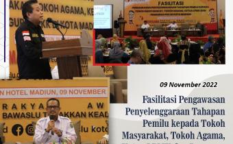 Rabu (9/11) Bawaslu Kota Madiun mengadakan acara kegiatan sosialisasi fasilitasi pengawasan penyelenggaraan tahapan pemilu. Hadir sebagai peserta antara lain tokoh masyarakat, tokoh agama, ketua LPMK, & pengurus PKK di kota madiun.