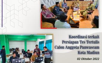Menjelang dimulainya tes CAT rekrutmen calon anggota Panitia Pengawas Pemilu Kecamatan (Panwascam), Bawaslu Kota Madiun menyambangi SMK Negeri 1 Kota Madiun. Kunjungan Bawaslu Kota Madiun tersebut untuk berkoordinasi dengan Kepala Sekolah SMK Negeri 1 Kota madiun.