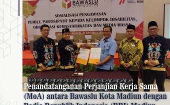 Madiunkota.bawaslu.go.id, Kota Madiun- Menyongsong tahapan Pemilu serentak 2024, Bawaslu Kota Madiun sepakat menjalin kerja sama untuk sosialisasi pencegahan dan pengawasan pemilihan umum dan pemilihan kepala daerah serentak bersama Lembaga Penyiaran Publik Radio Republik Indones