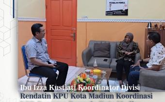 Tahapan pemilu 2024 telah dimulai. Koordinasi terus dilakukan oleh penyelenggara pemilu di Kota Madiun. Pada hari Kamis (21/7), Anggota KPU Kota Madiun, Izza Kustiarti, berkunjung ke kantor Bawaslu Kota Madiun.