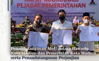 Jelang tahapan pemilu dan pilkada serentak 2024 sinergitas terus dilakukan oleh Bawaslu Kota Madiun. Pada Rabu (13/7) Bawaslu Kota Madiun melakukan kesepakatan bersama (MoU) dengan Pemerintah Daerah Kota Madiun.