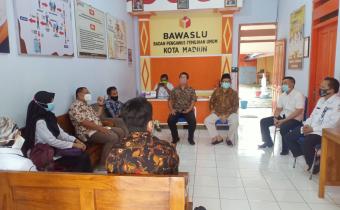 Madiunkota.bawaslu.go.id, Kota Madiun- Tenaga Ahli Humas Bawaslu RI, Sulastio beserta staf bertandang ke Bawaslu Kota Madiun dalam rangka Monitoring dan Evaluasi Layanan Keterbukaan Informasi Publik di wilayah Bawaslu Provinsi Jawa Timur pada Rabu, 10 Maret 2021 bertempat di Kant